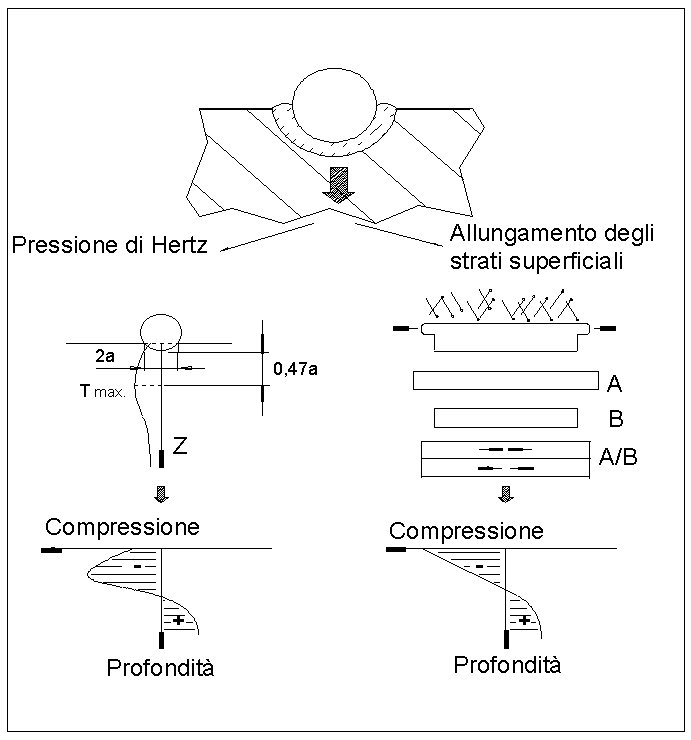 • profondità delle zone in compressione,
