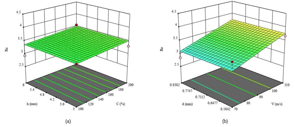 Infine, i dati numerici ottenuti sono stati elaborati con la Response Surface Methodology (RSM), che costruisce equazioni matematiche di previsione, e analizzati con l’ANOVA per individuare i fattori più significativi (box 2). L’ottimizzazione multi-obiettivo è stata condotta tramite la funzione di desiderabilità, che permette di bilanciare parametri in conflitto (massima compressione e minima rugosità) e identificare il miglior compromesso operativo.