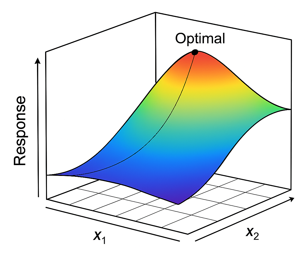 La RSM, o Metodologie delle Superfici di Risposta, è un insieme di tecniche statistiche sviluppate per modellare e ottimizzare processi complessi in cui più parametri influenzano una o più risposte di interesse. L’idea centrale è costruire un modello matematico, basato su un numero limitato di esperimenti o simulazioni, che descriva come variano le prestazioni del processo al variare dei parametri operativi.