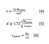 Risolvendo la disequazione che limita detto sforzo al valore ammissibile, si ottiene per il diametro dell’albero la seguente condizione: