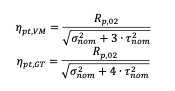 Tenuto conto che la deformazione plastica dell’albero in corrispondenza del carico ultimo può, in talune applicazioni, non essere ammissibile, si può, in questi casi, introdurre una limitazione assai più restrittiva, consistente nel prevenire che anche soltanto localmente si ecceda il limite elastico del materiale (inizio plasticizzazione): dal punto di vista pratico, ciò significa riscrivere le condizioni di verifica, introducendovi gli sforzi massimi, pari a quelli nominali moltiplicati per il rispettivo coefficiente d’intaglio: