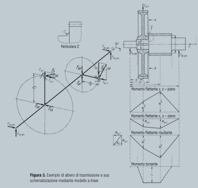 Una volta completati i calcoli sullo schema a trave, sono noti i valori massimi del momento flettente e del momento torcente, che potranno essere utilizzati per dimensionare l’asse o l’albero in oggetto.