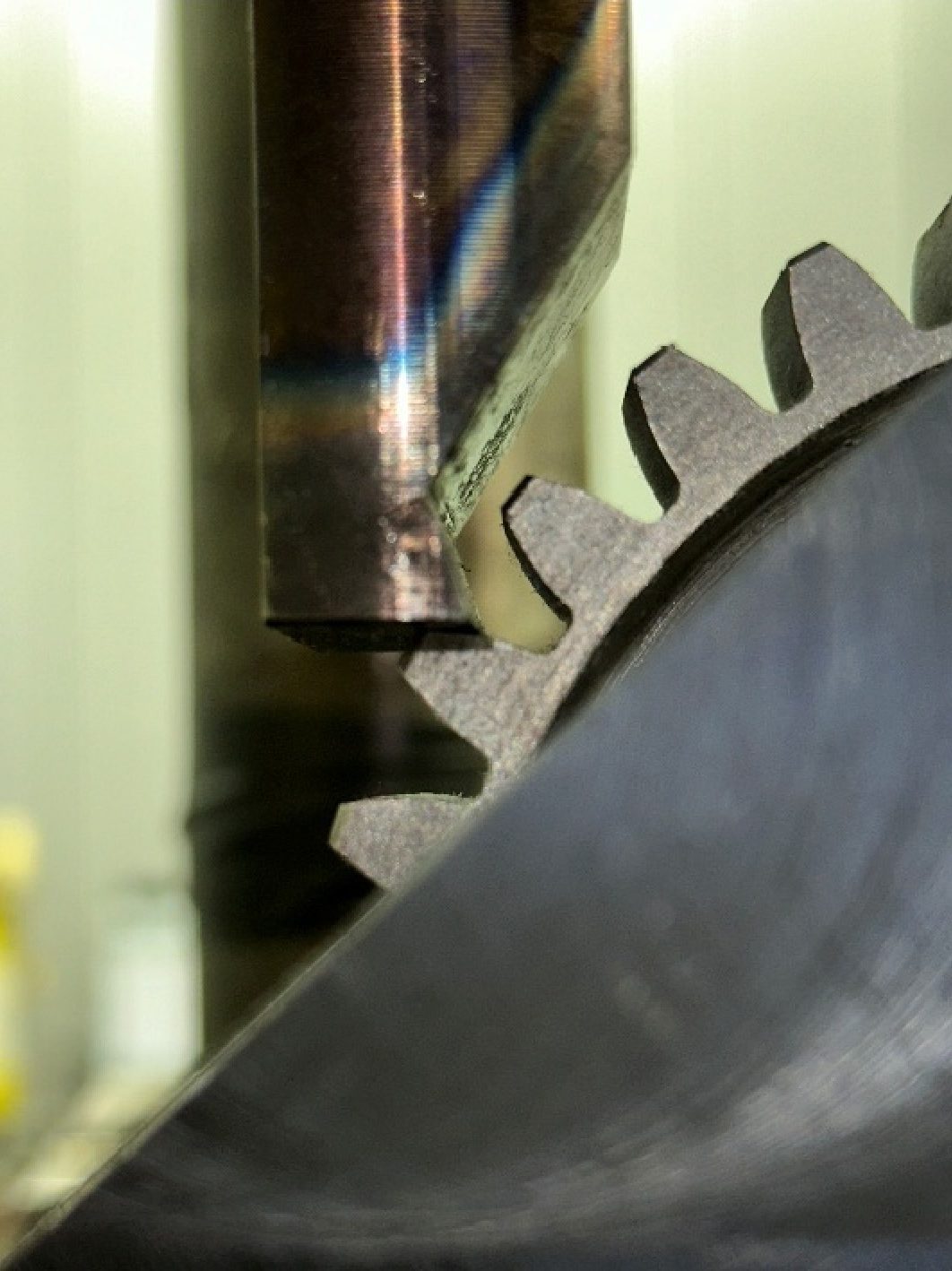 Il metodo di prova utilizzato da Lewicki et al. prevede l’impiego di ingranaggi in rotazione con campioni intagliati, il che consente di riprodurre condizioni operative più realistiche, poiché la rotazione degli ingranaggi include l’effetto del carico centrifugo.