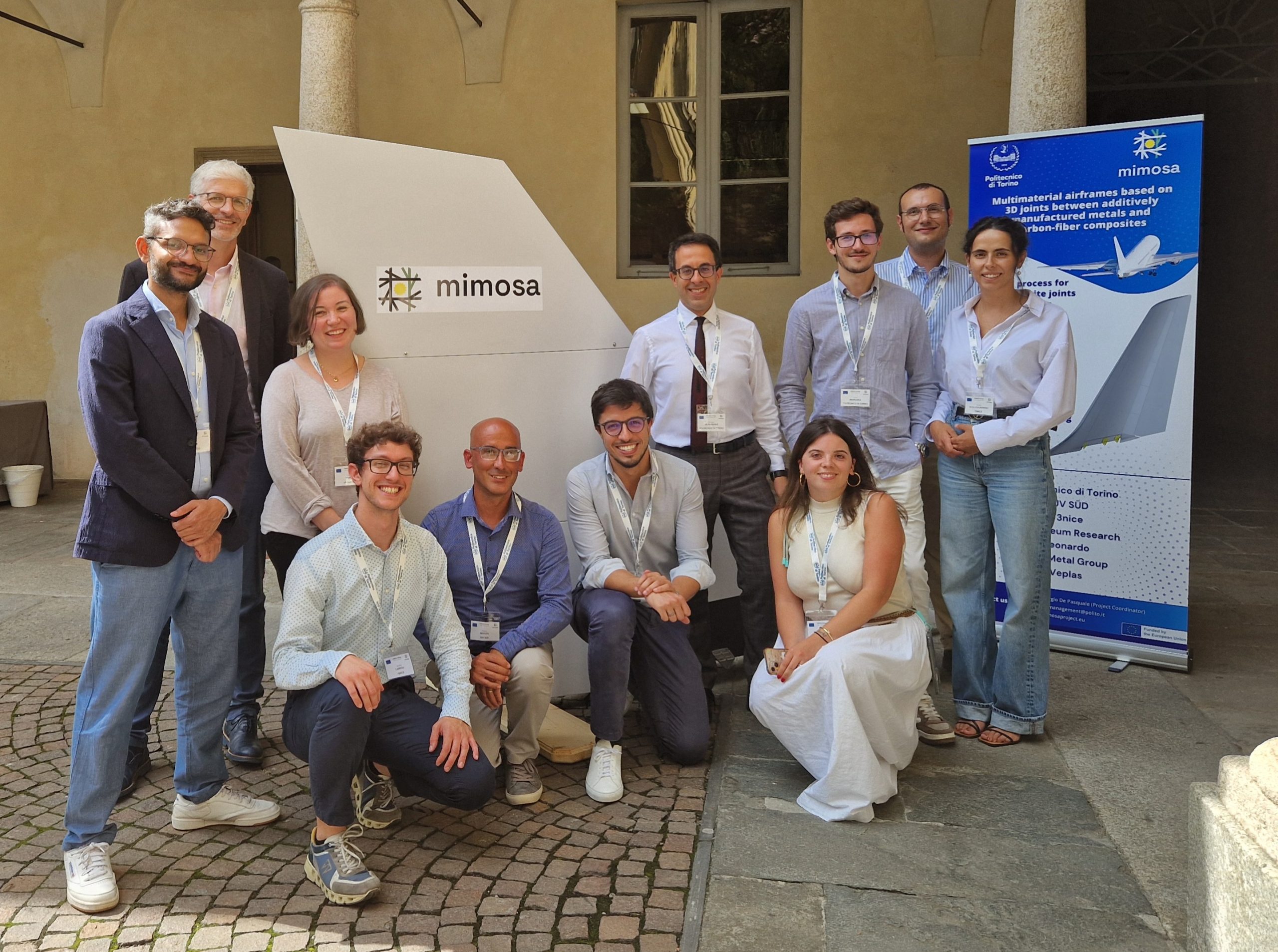 Il team Mimosa è composto, oltre che dal capofila Politecnico di Torino, dalla prima azienda italiana per la produzione di velivoli, Leonardo, che ha contribuito ai lavori con le divisioni “Aerostrutture” e “Labs” mettendo a disposizione i suoi stabilimenti per le prove sui componenti oggetto di sviluppo.
