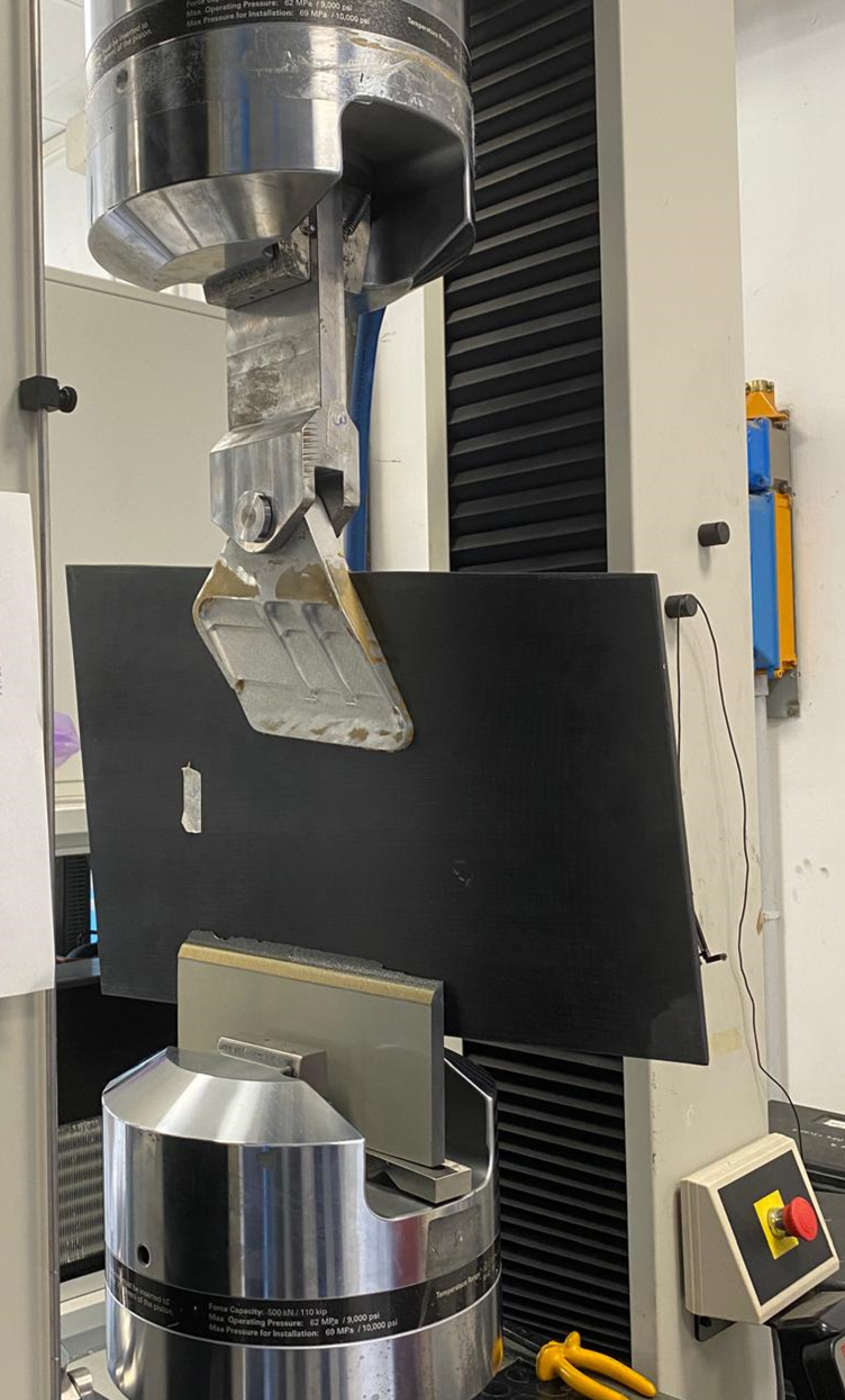 Figura 5. Test meccanici di collaudo del componente in scala reale realizzati presso i laboratori Leonardo. Le prove rivelano i carichi massimi di cedimento della giunzione, posta alla base dello stabilizzatore verticale del velivolo, e consentono di verificare gli opportuni coefficienti di sicurezza