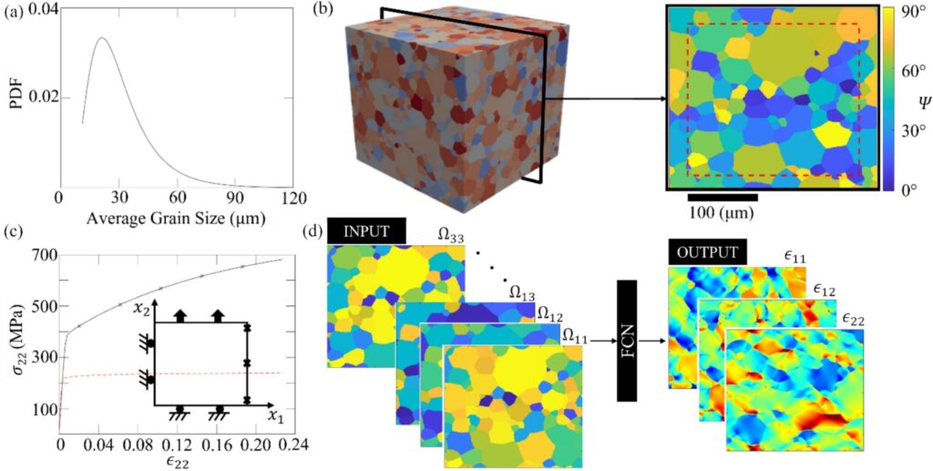 I ricercatori dell’University of Illinois hanno dovuto comprendere i limiti del modello di machine learning per determinare quando fosse appropriato utilizzarlo, ovvero l’intervallo applicabile di dimensioni e forme dei cristalli: “Abbiamo testato diverse distribuzioni granulometriche e dimostrato che per granulometrie più piccole possiamo ottenere ottime previsioni. Per granulometrie più grandi, abbiamo ottenuto ampie deviazioni. Dimostriamo che il nostro modello può catturare l’80% degli hotspot. Dimostriamo anche che è possibile prendere il nostro modello, addestrato su un materiale, e addestrarlo nuovamente per prevedere i campi di deformazione di un altro materiale modificando i parametri fisici del materiale, il tutto utilizzando un set di dati di un ordine di grandezza più piccolo” sottolinea Noh.