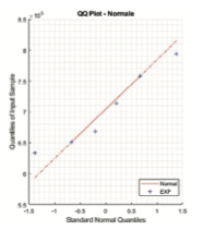 Per verificare se i dati sperimentali seguano una distribuzione gaussiana per un determinato valore di coppia, è stato utilizzato il Q-Q plot [9]. Questa rappresentazione consente di confrontare la distribuzione cumulativa della variabile osservata con quella della distribuzione normale. Per eseguire questa analisi è stato scelto il valore di coppia pari a 0.8 Nm, per il quale sono stati testati sei ingranaggi, garantendo una migliore rappresentatività.