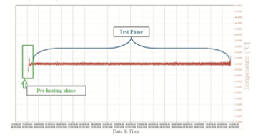 Figura 5. Andamento della temperatura: fase di preriscaldamento e fase di prova