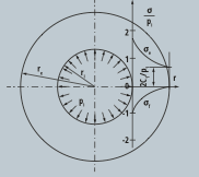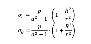 Il legame tra la pressione e l’interferenza si determina utilizzando i risultati della trattazione del problema elastico assialsimmetrico dei dischi e cilindri di grosso spessore sottoposti a pressione sulla superficie interna ed esterna. In assenza di effetti termici e di forze di volume (ad esempio quella dovuta alle forze radiali dovute alla rotazione) la teoria consente di scrivere le seguenti relazioni per gli sforzi secondo le direzioni principali radiale e circonferenziale: