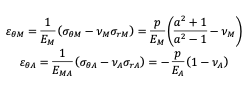 Applicando la legge di Hooke, si può calcolare la deformazione circonferenziale rispettivamente per mozzo e albero, in corrispondenza del diametro di accoppiamento d. Indicando con E il modulo elastico (di Young), con n il coefficiente di Poisson e ipotizzando che essi possano essere diversi per i materiali di mozzo e albero si ha:
